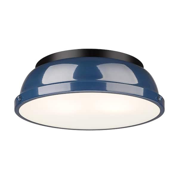 Duncan 14 in. 2-Light Matte Black Flush Mount with Blue Shade and No Bulbs Included 1-Pack