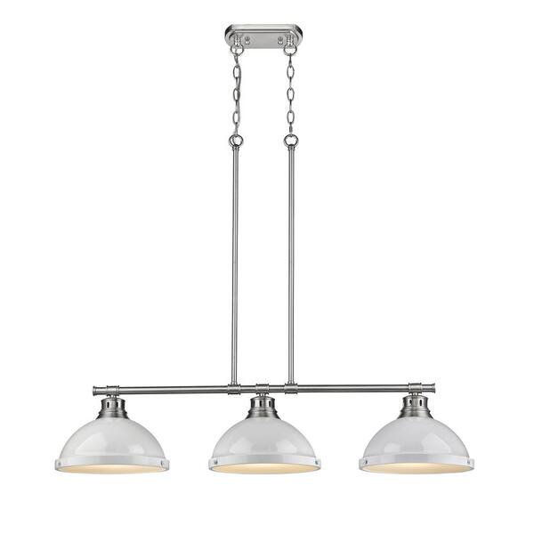 Duncan 3-Light Pewter Pendant with White Shade