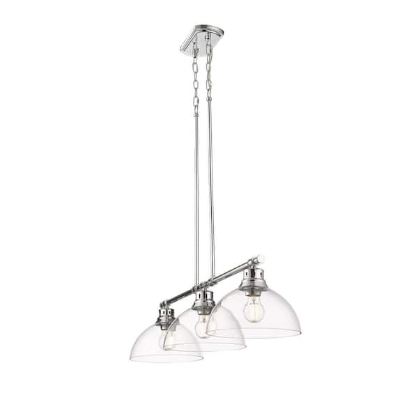 Duncan 300-Watt 3 Light Chrome Island Pendant Light with Clear Glass Shade, No Bulbs Included