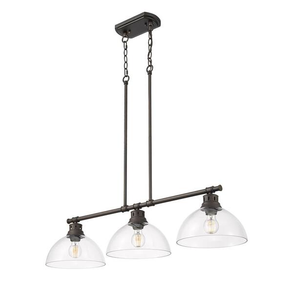 Duncan 300-Watt 3 Light Rubbed Bronze Island Pendant Light with Clear Glass Shade, No Bulbs Included