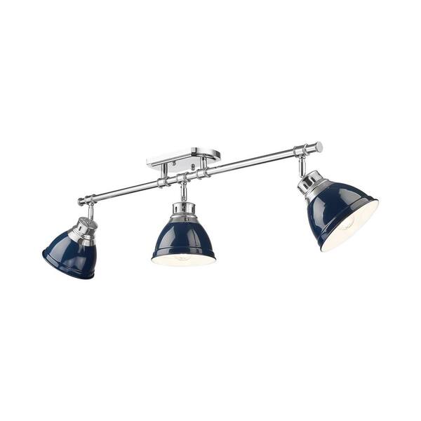 Duncan 6.5 in. 3-Light Chrome Semi-Flush Mount with Blue Shade and No Bulbs Included