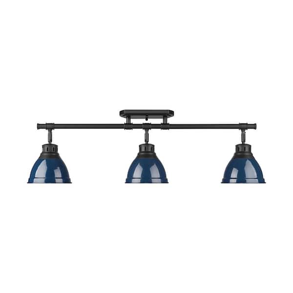 Duncan 6.5 in. 3-Light Matte Black Semi-Flush Mount with Blue Shade and No Bulbs Included