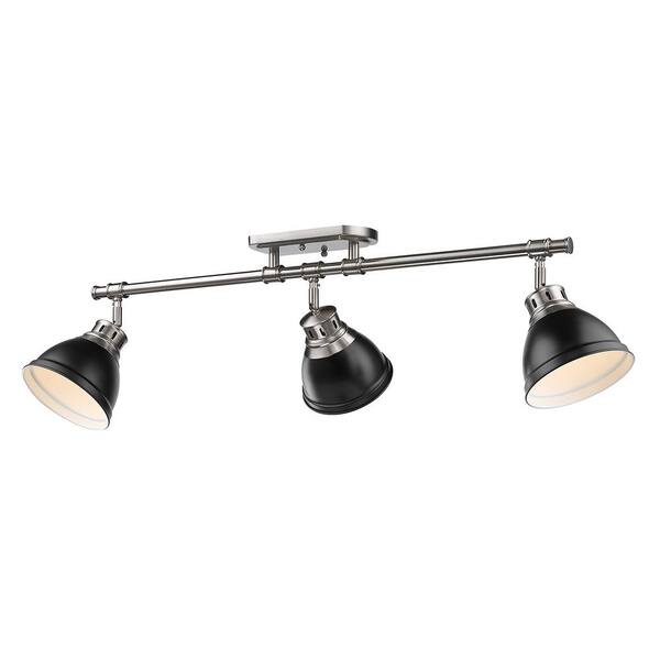 Duncan 6.5 in. 3-Light Pewter Semi-Flush Mount with Black Shade and No Bulbs Included