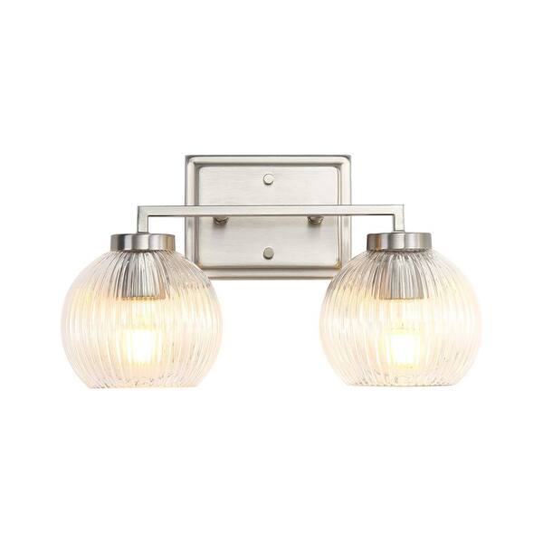 Elliott 7 in. 2 Light Pewter Vanity Light with Ribbed Clear Shade