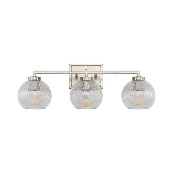 Elliott 7 in. 3 Light Pewter Vanity Light with Ribbed Clear Shade