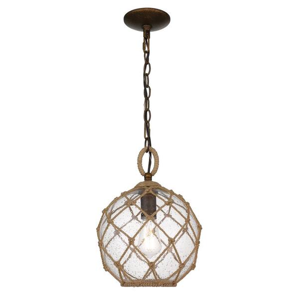 Haddoc 1-Light Burnished Chestnut Bronze Small Pendant with Seeded Glass Shade