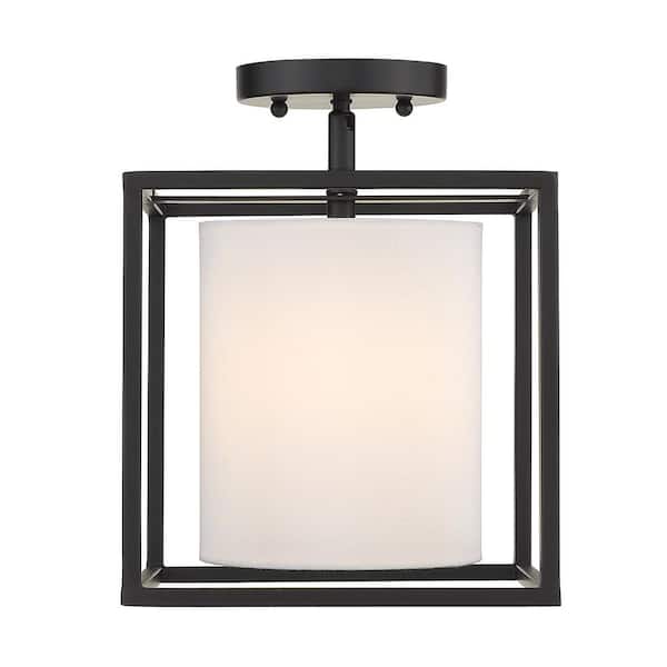 Manhattan 22.5 in. 1-Light Black Semi-Flush Mount