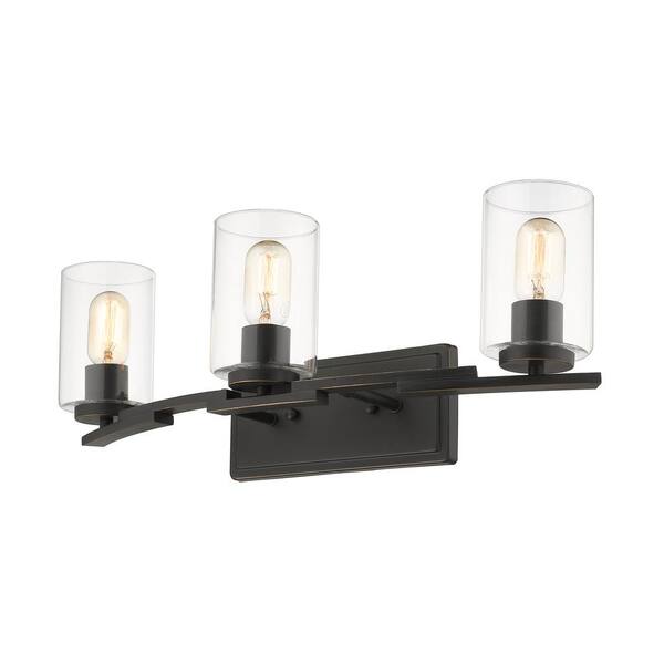 Monroe 3-Light Black with Clear Glass Bath Vanity Light