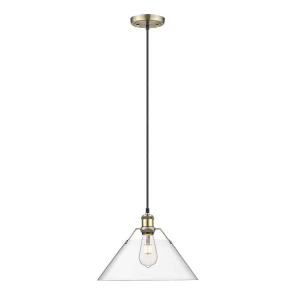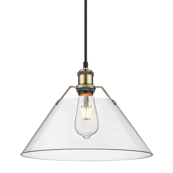 Orwell 100-Watt 1-Light Aged Brass and Clear Glass Pendant Light