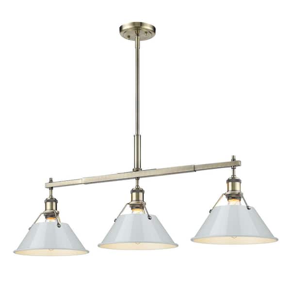 Orwell 100-Watt 3-Light Aged Brass and Dusky Blue Linear Pendant Light