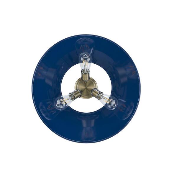 Orwell 18.75 in. 3-Light Aged Brass and Matte Navy Flush Mount