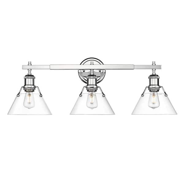 Orwell 27.25 in. 3-Light Chrome Vanity Light with Clear Glass Shade
