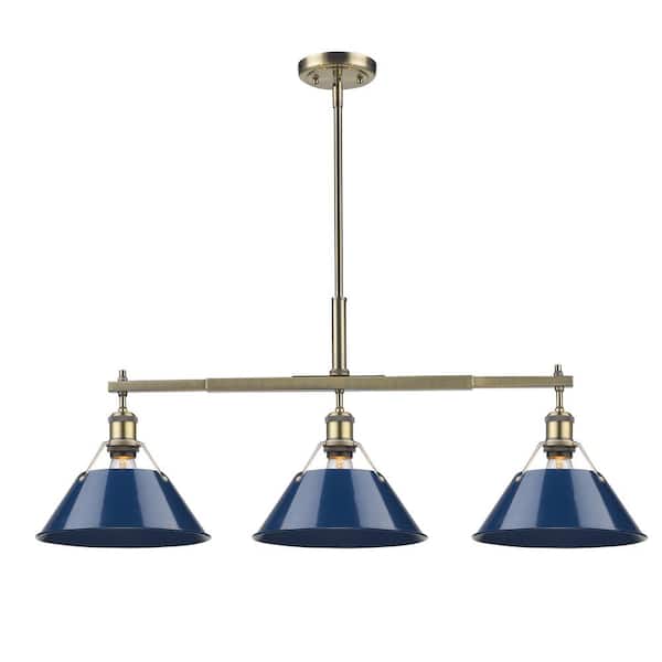 Orwell AB 3-Light Aged Brass Pendant with Navy Blue Shade