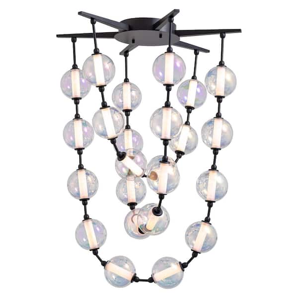 Pearla 86-Watt 1 Light Matte Black Integrated LED Pendant Light with Iridescent Glass Shade