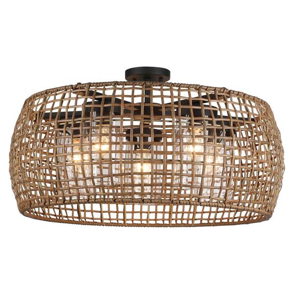 Piper 5-Light Natural Black Outdoor Semi-Flush Mount Light with Maple All Weather Wicker Shade