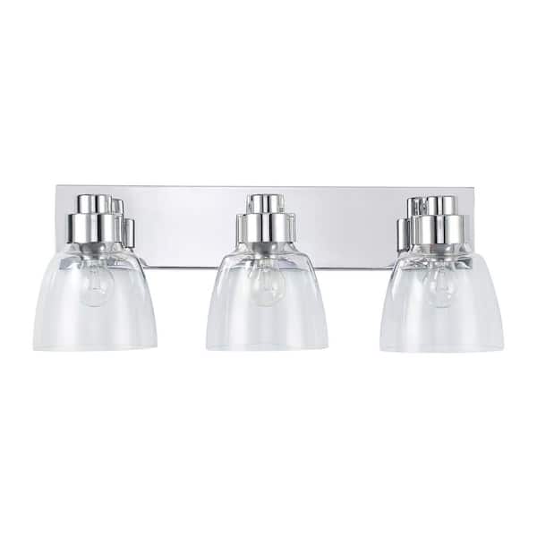 Remy 8 in. 3-Light Pewter Vanity Light with Clear Shade