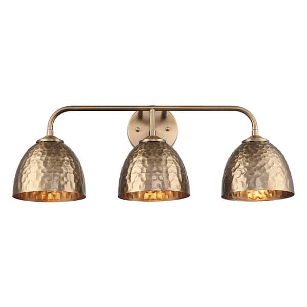 • Modern brass vanity light with hammered metal shades