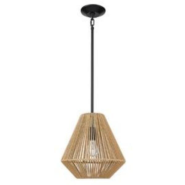 Valentina 1-Light Matte Black Lantern Pendant with Natural Raphia Rope Shade