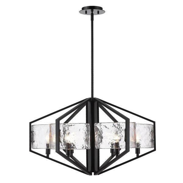 Varsha 27.4 in. 6- -Light Matte Black Geometric Chandelier with Glass Shade