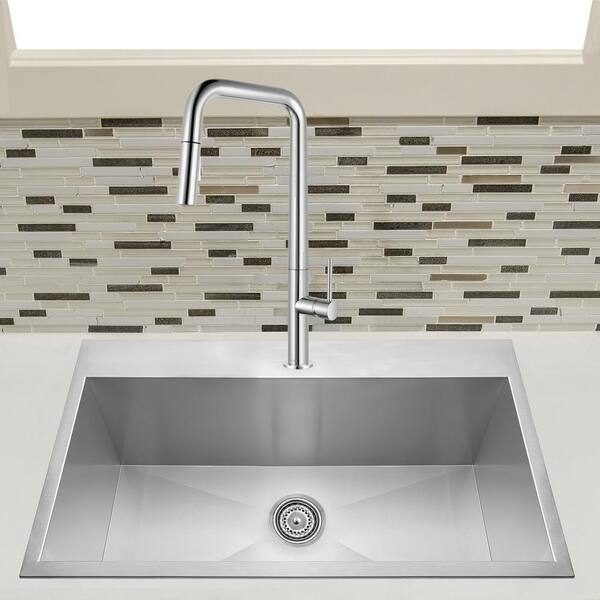 All-in-One Stainless Steel 33 in. x 22 in. Single Bowl Drop-In Kitchen Sink with Pull-down Faucet