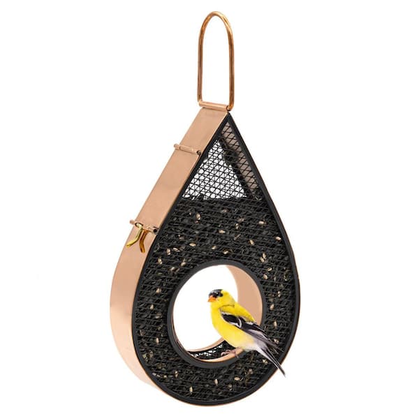 0300PM Rain Drop Fly-Thru Copper Bird Feeder, With Stainless Steel Black Mesh Panels