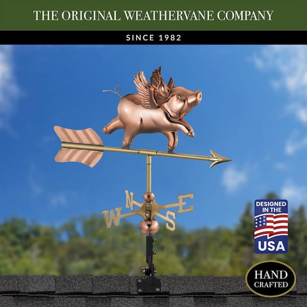 Flying Pig Cottage Weathervane - Pure Copper with Roof Mount