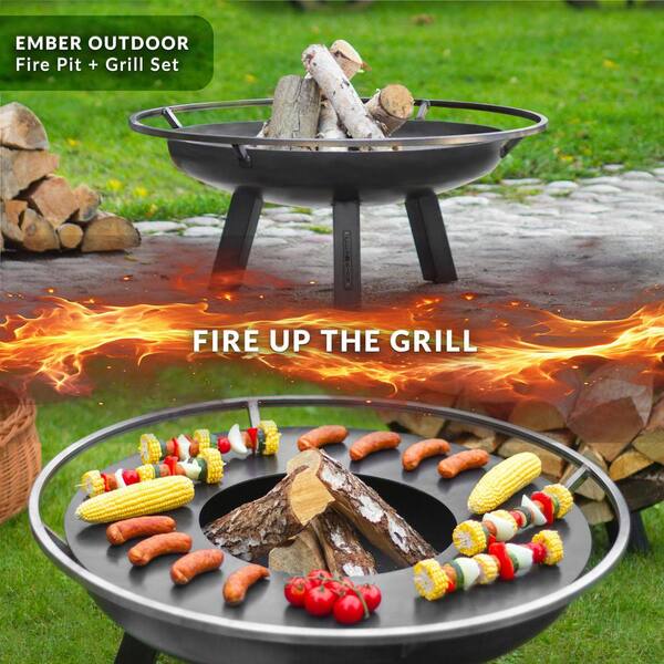 Porto 24 in. Fire Pit with Grill Plate and Cover Lid