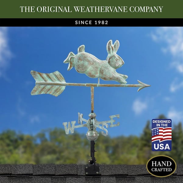 Rabbit Cottage Weathervane - Blue Verde Copper with Roof Mount