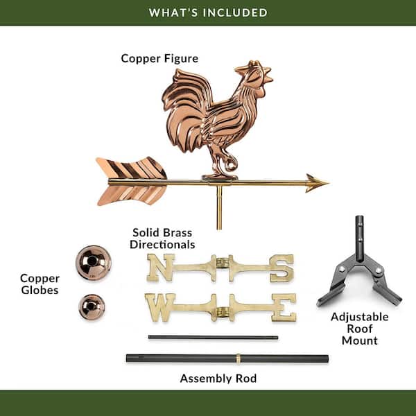 Rooster Cottage Weathervane - Pure Copper with Roof Mount
