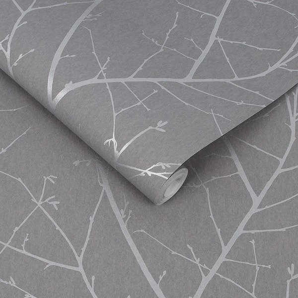 Boreas Deep Grey and Silver Trees Trail Paste the Wall Wallpaper