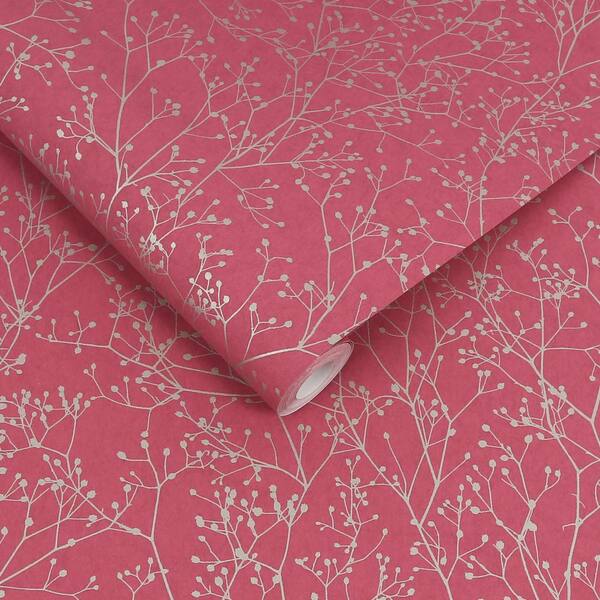 Clarissa Hulse Gypsophila Raspberry and Silver Wallpaper