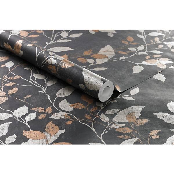 Vermeil Leaf Black, Silver and Copper Removable Wallpaper