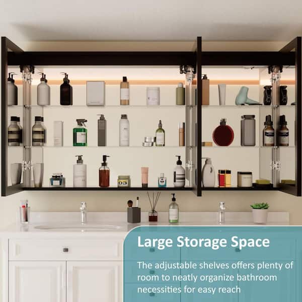 Grand 60 in. W x 32 in. H Rectangular Aluminum Medicine Cabinet with Mirror, Dimmable, 3-Color Lighting, Anti-Fog