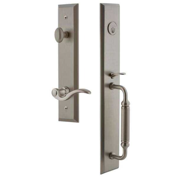 Fifth Avenue Satin Nickel 1-Piece Door Handleset with C Grip and Bellagio Lever - Left Handed