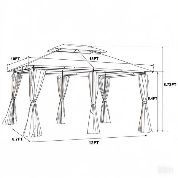 Gray 13 ft. x 10 ft. Outdoor Patio Gazebo Canopy Tent With Ventilated Double Roof And Mosquito Net