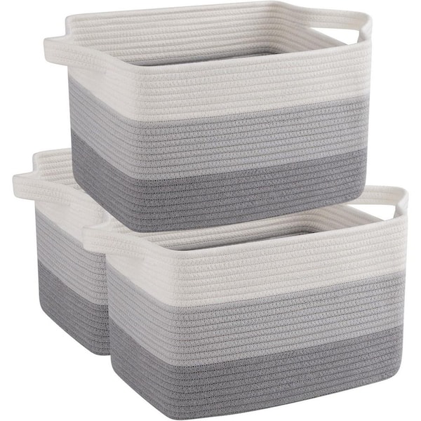Gray 13 in. x 8.7 in. Cotton Decorative Basket with Handles Set of 3
