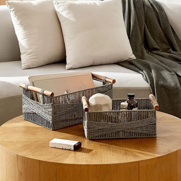 Gray 14.5 in. x 6.5 in. Paper Decorative Basket Set of 2