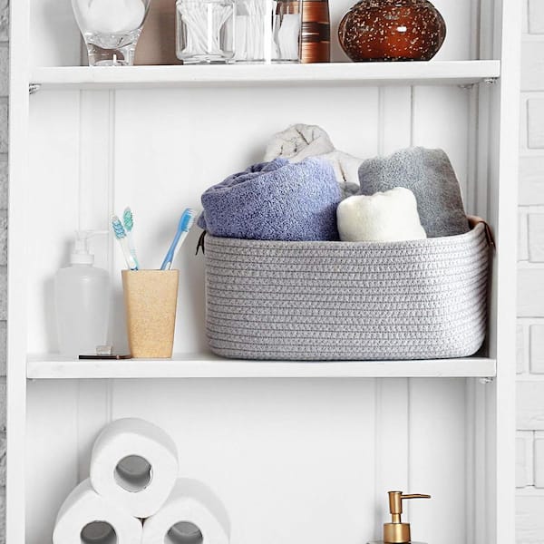 Gray 14.5 in. x 6 in. Cotton Decorative Basket Set of 2 with Handles