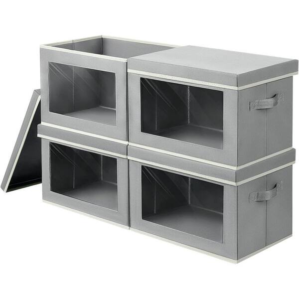 Gray 15.7 in. x 12 in. Fabric Decorative Basket Set of 4 with Handles and Lid