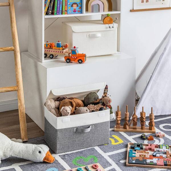 Gray 15.8 in. x 10 in. Linen Decorative Basket Set of 2