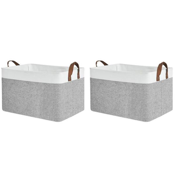 Gray 16.5 in. x 10.3 in. Fabric Decorative Basket Set of 2 with Handles