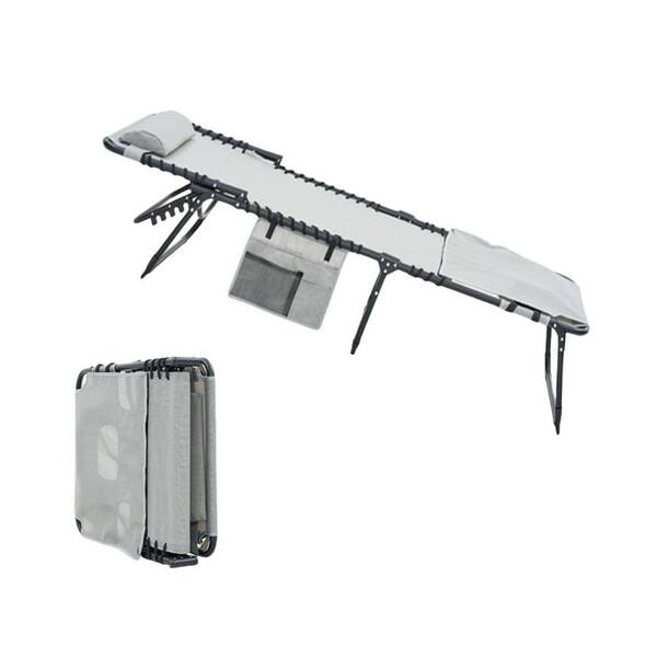 Gray 2-Piece Metal Outdoor Chaise Lounge Recliner Chair 5-Position Adjustable with Arm Holes for Pool, Beach, Patio