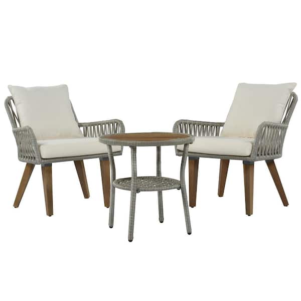Gray 3-Piece Aluminum Round 28.7 in. Table Height Outdoor Bistro Set