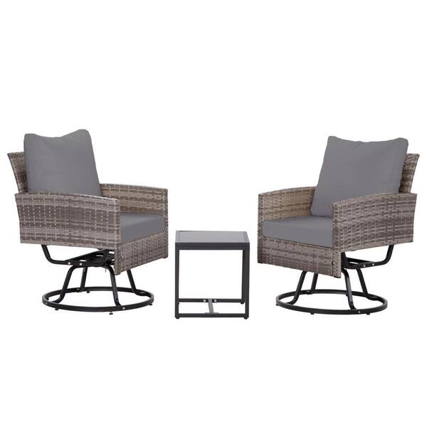 Gray 3-Piece Wicker Outdoor Patio Conversation Set with Gray Cushions