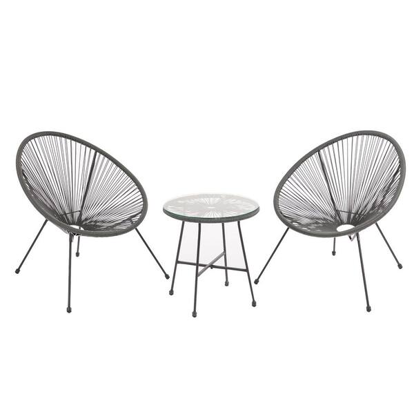 Gray 3-Piece Wicker Patio Conversation Set Egg Chair Set
