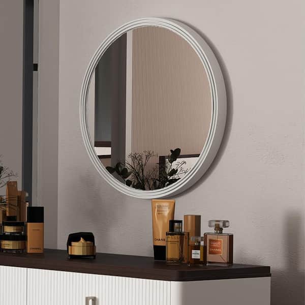 Gray 35 in W x 35 in. H Art Deco Round Glass Framed Mirror Bathroom Mirror