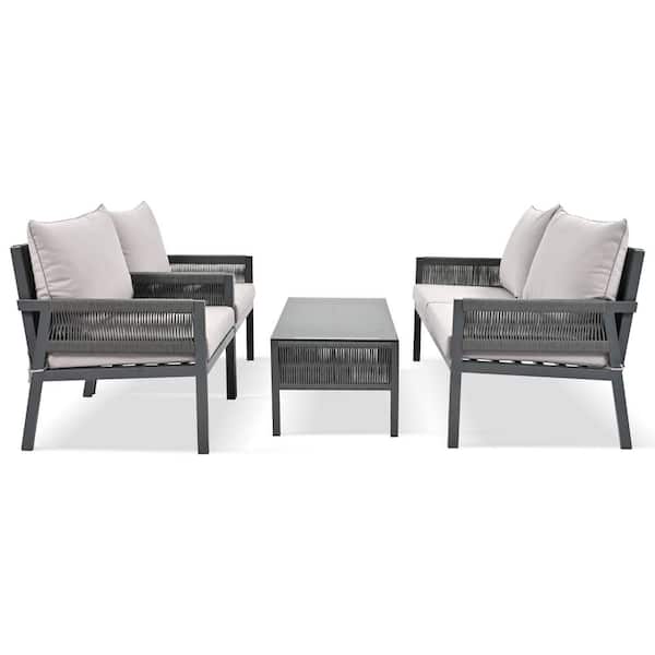 Gray 4-Piece Metal Patio Conversation Set with Gray Cushions