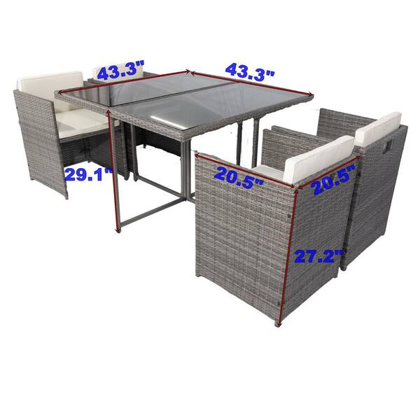 Gray 5-Piece Wicker Standard Height Outdoor Dining Set With Beige Cushions