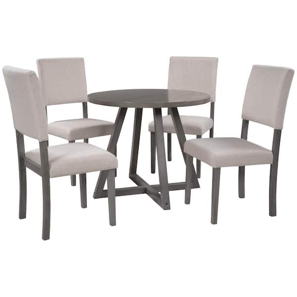 Gray 5-Piece Wood Outdoor Dining Set with Beige Cushions
