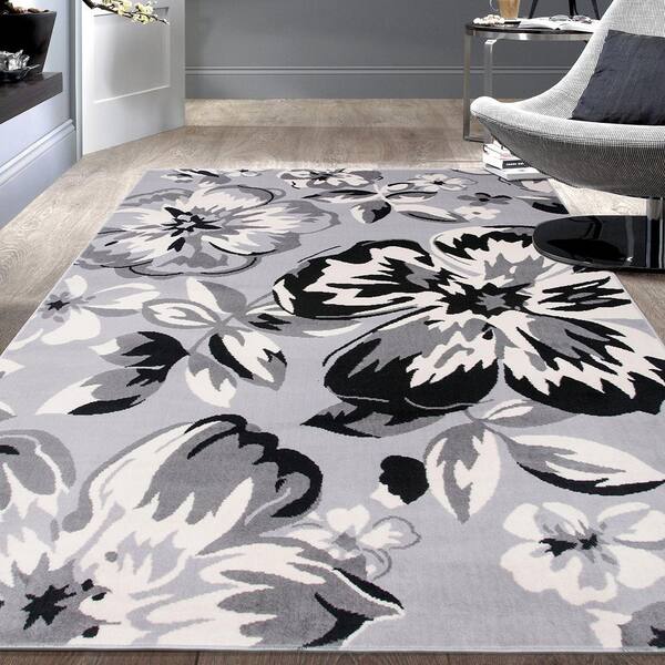 Gray 5 ft. x 7 ft. Floral Indoor/Outdoor Polypropylene Area Rug